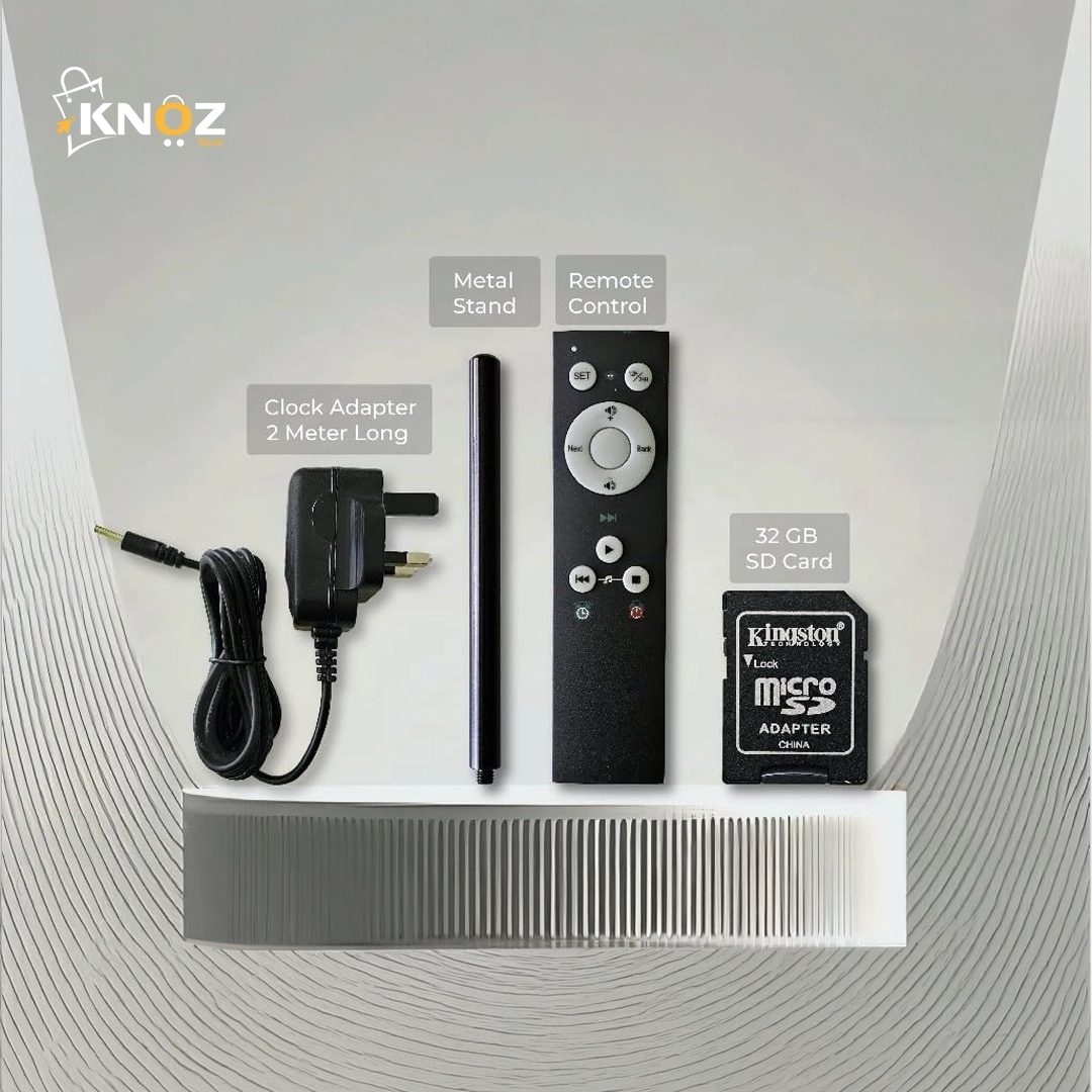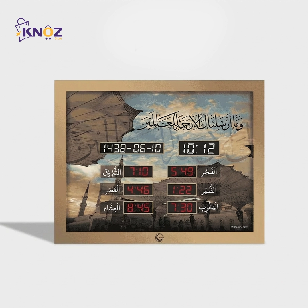 مع ساعة كنوز الذكية من knozstore، اجعل بيتك ينبض بالإيمان والتنظيم والسكينة، عِش التجربة التي تجمع بين التكنولوجيا الحديثة وروح العبادة الحقيقية، حيث يتحول الوقت إلى ذكر، والأيام إلى فرص للتقرب من الله.